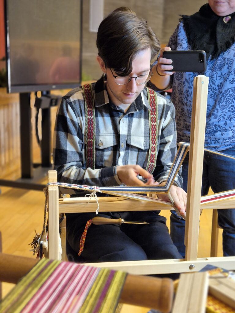 William Riedlinger holdt foredrag om båndstol og bånd i ripsplukk fra østre deler av Norge. Han har vevd opp prøver av flere ulike band i denne teknikken og grubler videre over hvordan de har blitt vevd. Hans tekniske innsikt og brede vevkunnskap er virkelig noe å fryde seg over!