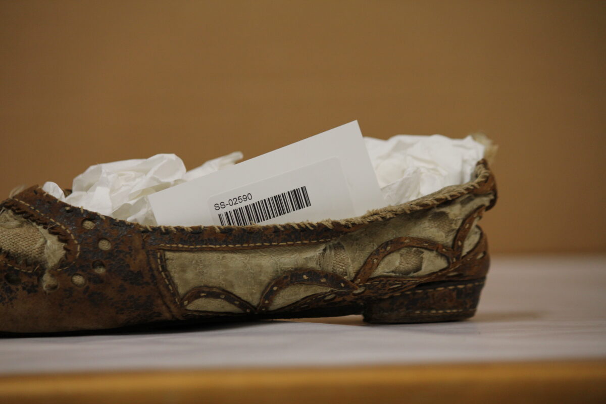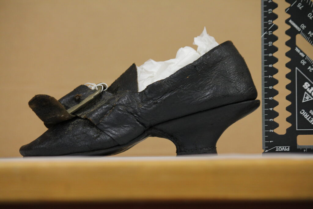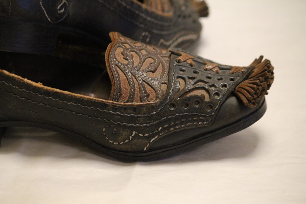 Her er flere sko som før var i de Sandvigske Samlinger i Digitalt museum. Mye ulikt, men viktig at dere kan få se litt ulike sko. Og dette er fra Norge, brukt i Norge. Vendsøm er i bruk som finsko siden midten av 1600, i Mote og bydrakt. Her ser vi noen sko som jeg kan si er folkedrakt, men det er ikke 1800 talls -hæler. Bymotenhælen er anderledes etter 1840, mellom 1789 og 1840 er sko og støvler nesten uten hæler. Når hælene gjør gjenkomst er den satt på skoen helt ulikt vendsøm, som er en tapt teknikk på 1800 tallet. Og hælene får en annen form og utseende. Folkedraktsko på 1800 tallet har knapt noe som minner om de gamle hælene, bymote og folkedrakt er ulike med andre særtrekk enn i vendsømteknikken.