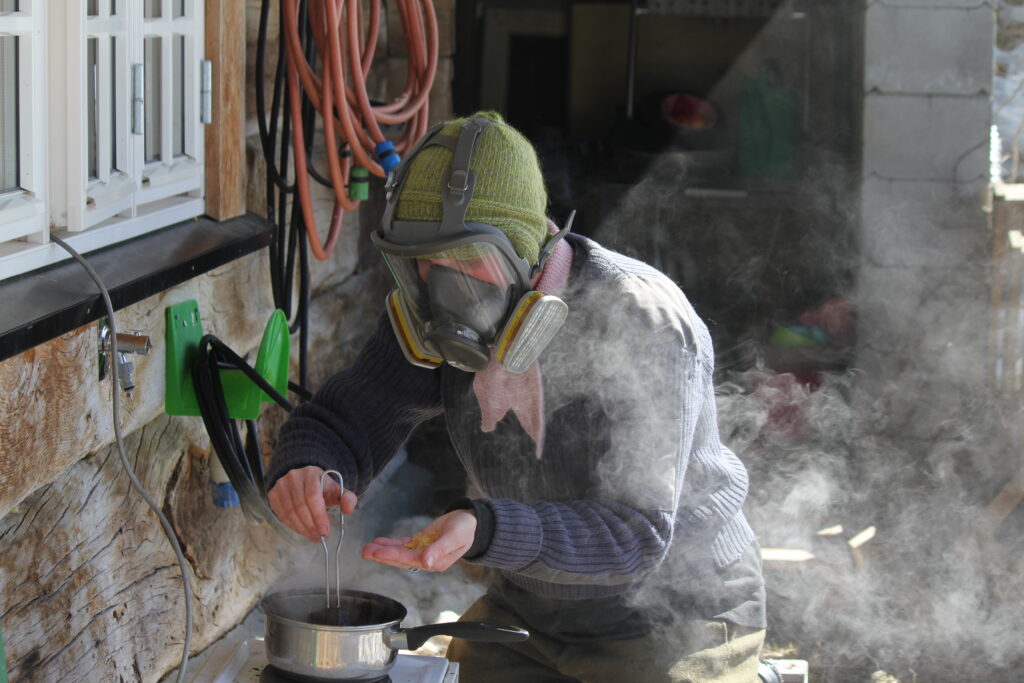 Testing a few drops in cold wather, do not toss the wet lump back into the hot tar.