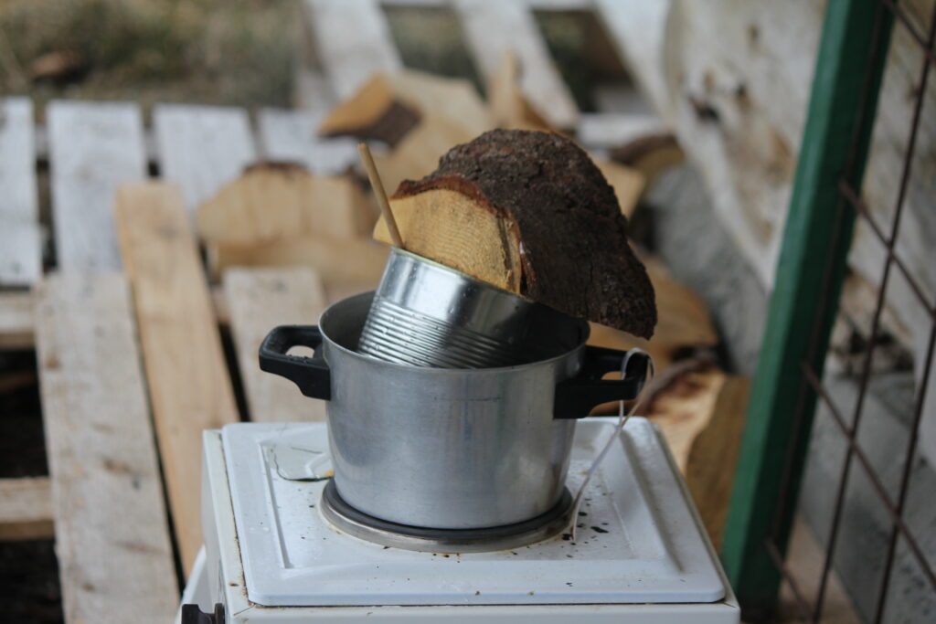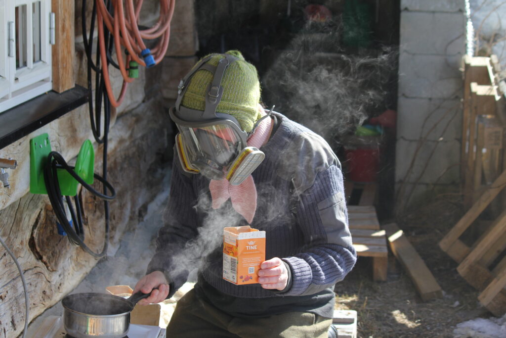 Bland inn harpiks en spisesje om gangen. Kok utendørs. Gassmaske er et godt valg, jeg bor på gård og ikke en bygård med naboer som plages.
