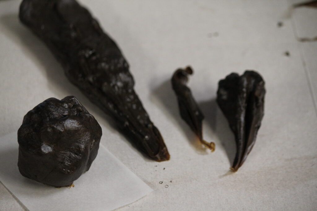 Jeg mener at blandingen min har for mye bivoks, da jeg dro klumpen i to kjentes det som fudge. Luftig. Den må kjøle seg ned så kan jeg kjenne bedre og prøve den på en tråd.