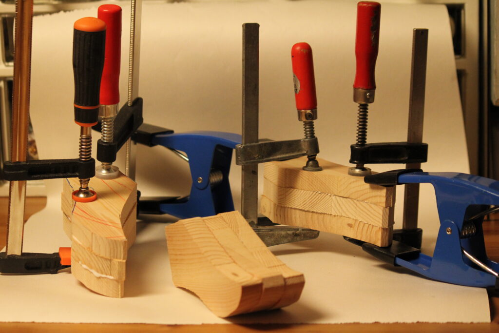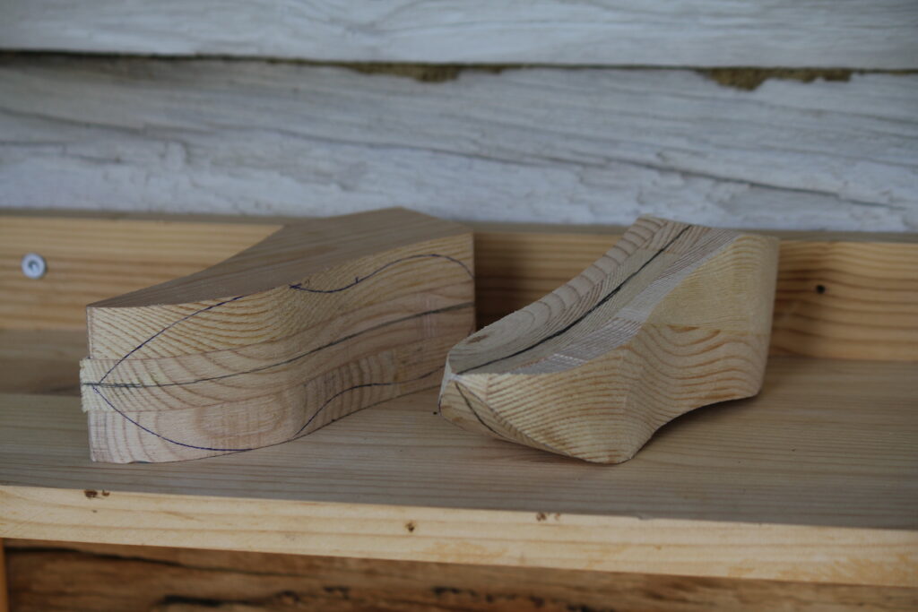 English: As I glue the wood together I can have the midline in the middle, I saw it with the bandsaw.