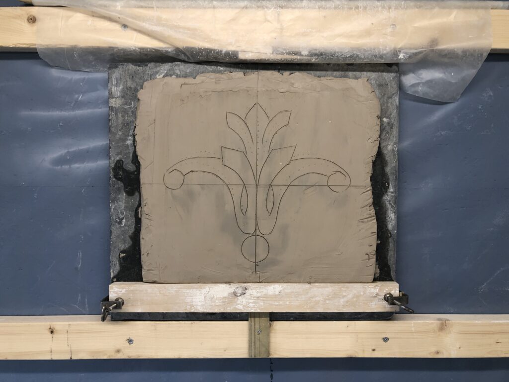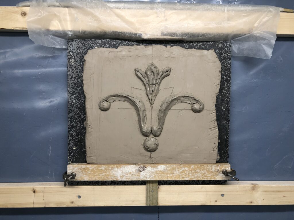 Inspirasjonen (innfallet?) har kommet fra litt ulike kanter. Først og fremst fra en parallell jobb jeg hadde i fjor på Ornamentfabrikken1 der jeg bl.a. modellerte noen modeller i nettopp leire. Nest, så har jeg vært veldig opptatt av den rå og frie modelleringen i gipsmodellene fra Vestre gravlund gamle kapell2 – som jo minner om arbeidet på fasaden på Latinskolen. OG til sist- men ikke minst!- fra min kjære partner Stine, som fabulerte om muligheten for at Mons Hartvedt kanskje hadde små modeller (i tillegg til tegninger) å jobbe etter når han arbeidet på Latinskolen3.