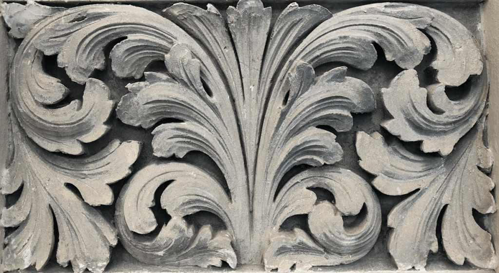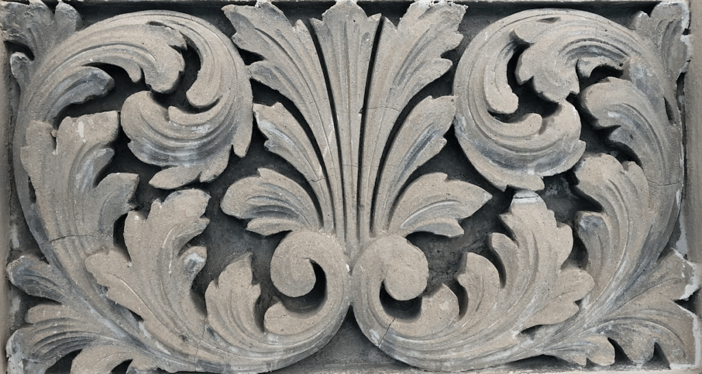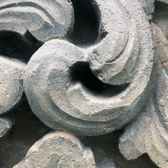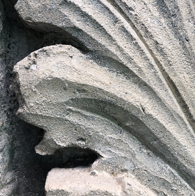 Det jeg nok liker ekstra godt med ornamentene på Latinskolen er friheten i materialhåndteringen som de fremviser. I hvert ornament sin overordnede design så er det subtile «brudd» i det som tilsynelatende er strenge symmetrier, linjeføringen er trygg men lett og ledig, og formene er modellert fritt og åpent. Ikke slurvete og ikke pirkete, men (akkurat) nok til å oppnå ønsket effekt! Særlig typisk er en liten «snert» med bløt mørtel som ofte er lagt på de ytterste strålene på akantusbladene. Dette gir «liv» til ornamentene, og viser særlig til mulighetsrommet- og kvalitetene- som ligger i det å arbeide i et plastisk medium.
