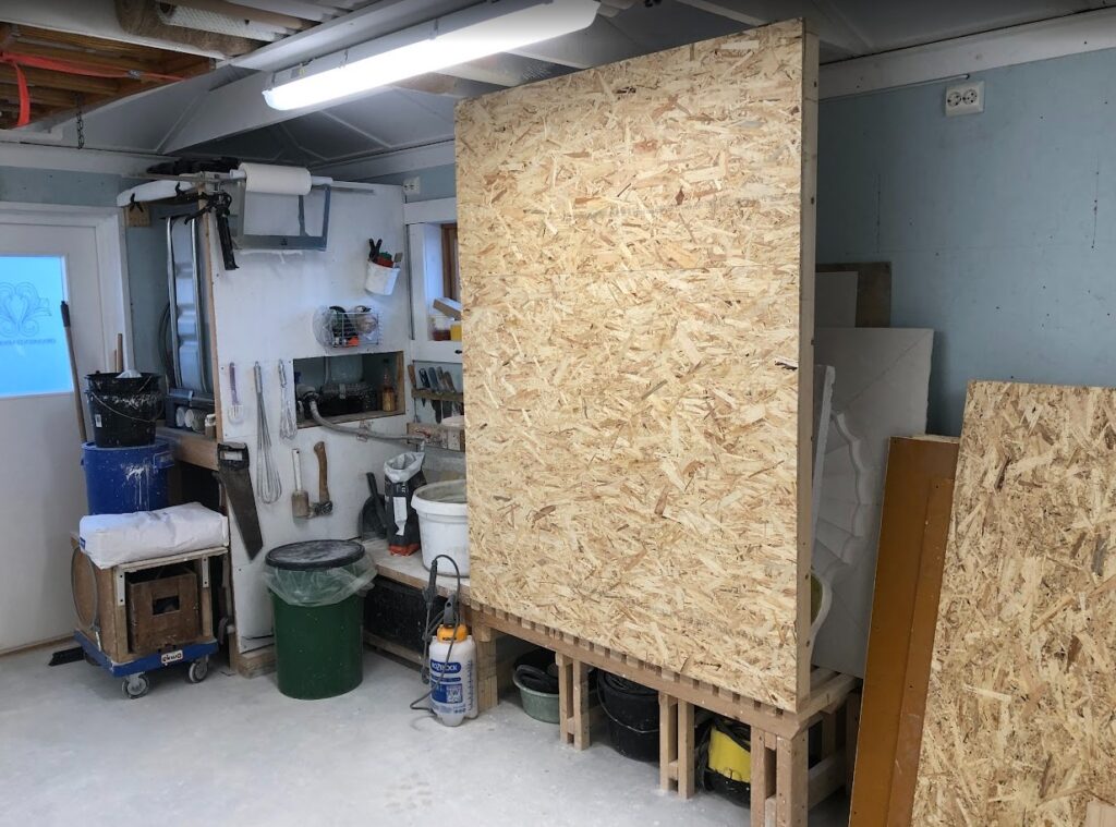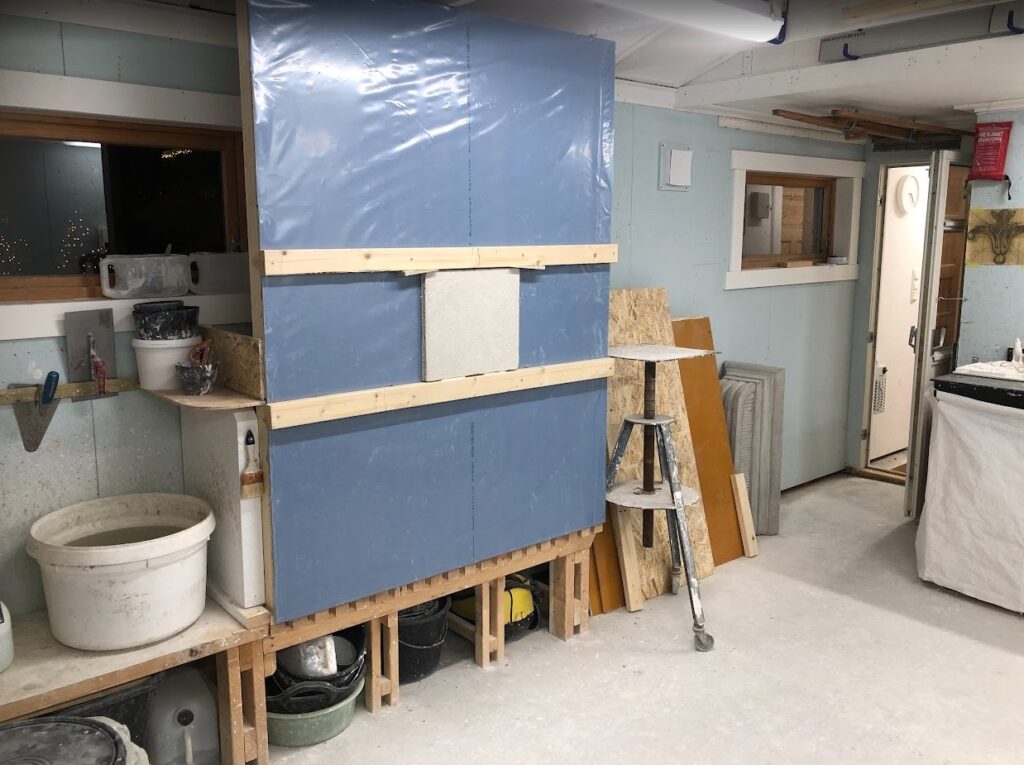 Og i tillegg – uten å ha planlagt for det, og da kanskje enda bedre! – fikk jeg en liten «huk» bak veggen til å gjemme unna plater og materiell som ellers alltid står i veien på verkstedet. BONUS!