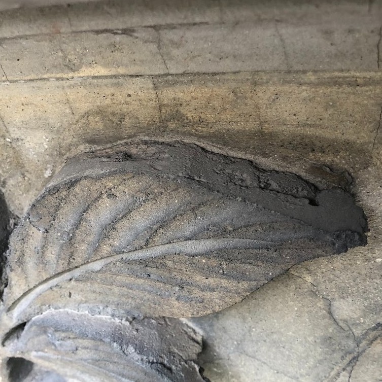 - Gipsmørtelen virket noe seig, treg eller «trå» å modellere med. Den sklir ikke av verktøyet slik «den burde» , og ved modellering av fine detaljer kan den «rive» og bli flisete. Er dette fordi gips er grovere malt enn sement? Kan det hjelpe å tilsette marmormel? Nest ut blir er øvelse med sement for sammenligning …