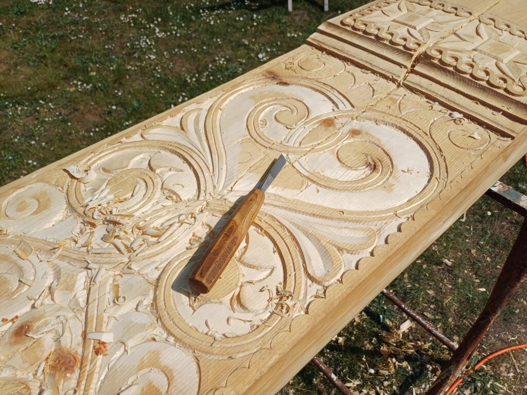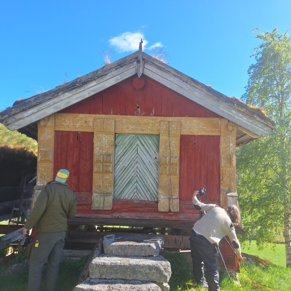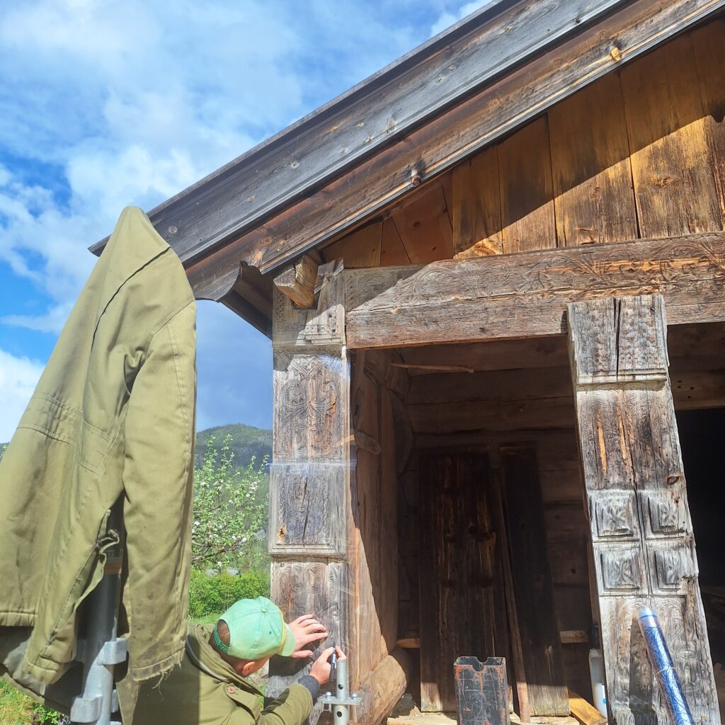 På dette prosjektet gikk vi mer «gammeldags» til verks. Til stede var en gruppe erfarne treskjærere, som har arbeidet mye med forskning og rekonstruksjonsarbeid rundt eldre treskjæring.