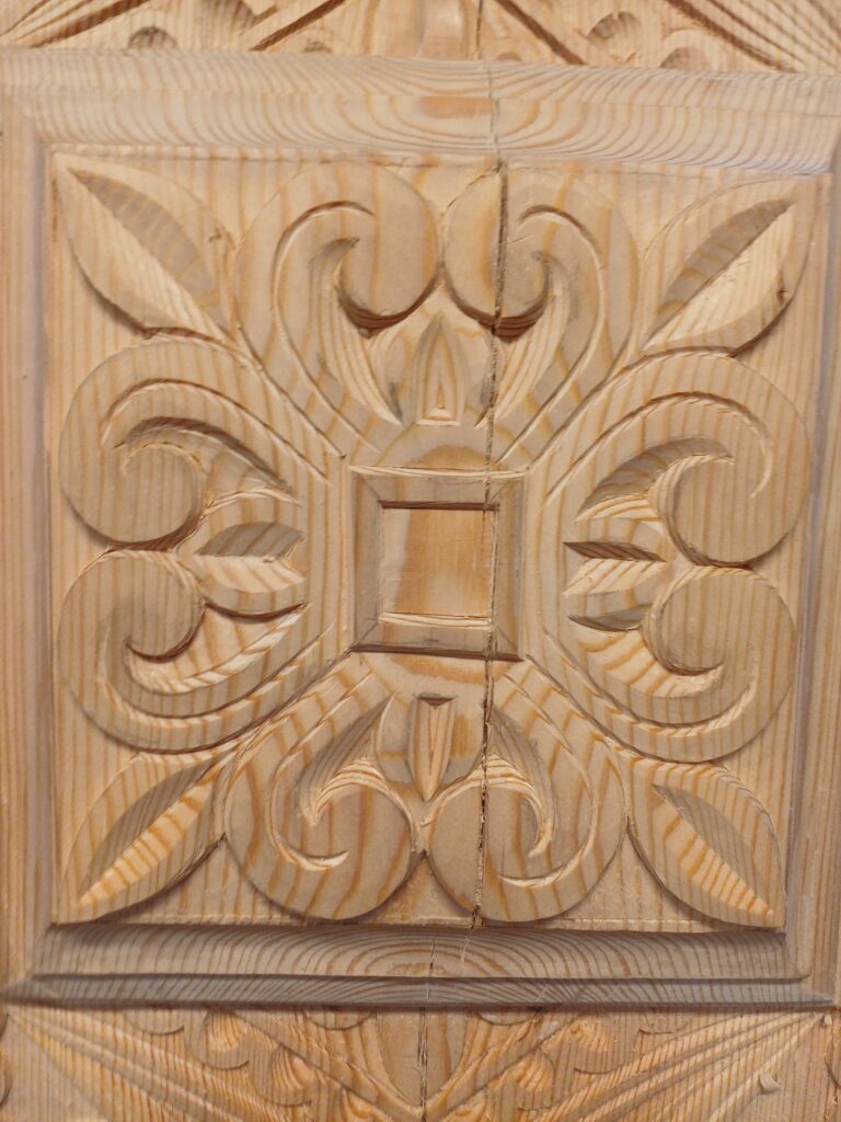 De fleste blader og rosetter har blitt fylt ut med det vi kaller karveskurdsnitt. Det vil si at en fordypning som følger konturytterlinjene på bladet, skjæres inn med skrå fasetter som alle møtes på midten i en bunn.