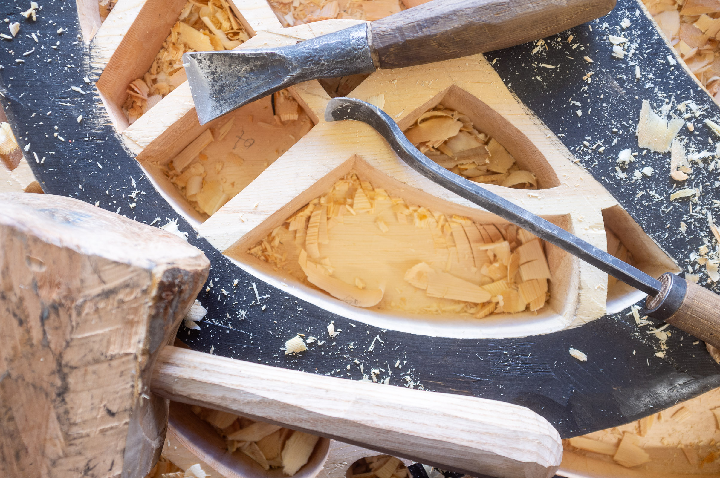 Urnesportalen er skåret usedvanlig dypt2, med (stort sett) pene, slette bunner. Hva kan ha vært brukt til å få til dette?