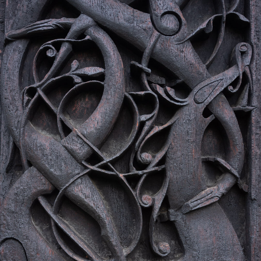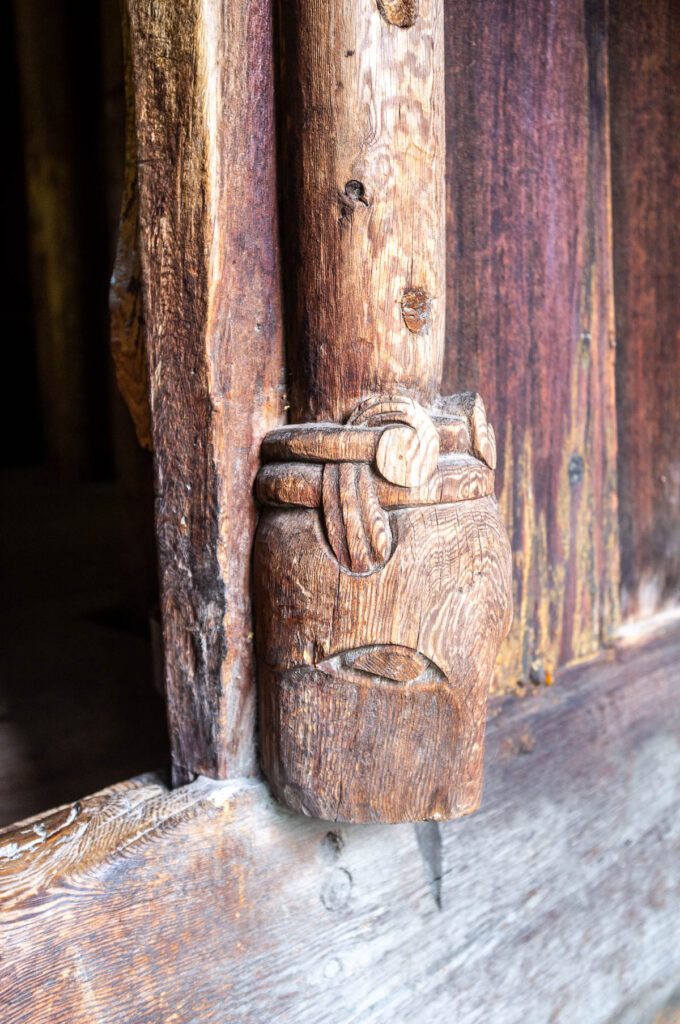 Det er ikke lett å velge hva som skal avslutte et eklektisk prosjekt som denne kalenderen – jeg har både en tendens til å stadig ville heve spenningen, men også få ut alle de spennende tingene så snart de er klare. Et stadig kappløp med meg selv altså. Men så er jo julen også en tid for å forsøke å senke skuldrene, og nyte de nære ting – jeg tenkte i så anledning det var fint å vende tilbake til Borgund igjen. Borgund stavkirke som gesamtkunstwerk mangler knapt betraktere, i følge Fortidsminneforeningen besøkte 63 056 denne i fjor (2024). Men alle deler blir nok ikke studert like nøye av alle, og til julaften har jeg lyst til å løfte fram noen få av alle de små og store drage- (eller dyre-?)hoder som ikke er like iøyenfallende.