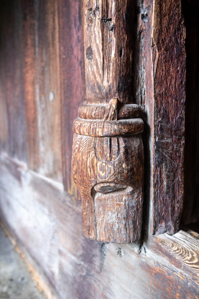 Sekstende desember – Borgund stavkirke, slåe, vestportalens innside