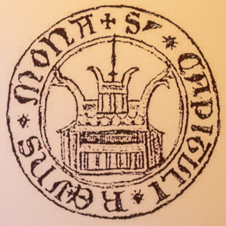 Dette skal være seglet fra et av Islands to eneste nonnekloster, Reynistaðarklosteret i Skagafjörður, og stamme fra en gang etter 1295. Jeg har ikke klart å grave opp mye informasjon om det, ei heller et bilde av selve seglet. Men også i denne tegningen av det virker det ganske klart at måten å avbilde en kirke i Skagafjörður omkring 1300 var en stavkirke med svalgang og/eller hevet midtrom, takrytter, og noe som minner påfallende om hodene fra tidligere denne uka..?